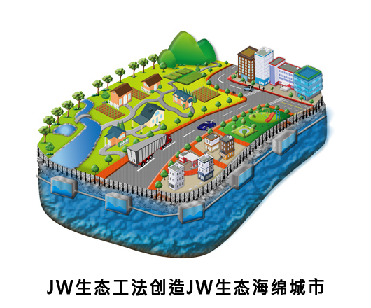 已被全球的气候专家与道路权威视为"改善环境的关键技术",同时具有调适气候的能力。JW生态工法秉持「拥抱地球‧造福人类」为宗旨,以人为本师法自然,不忘初衷, 回归自然的方式,同时协助国内各省、市、县、乡创造「安全、生态、永续、健康、乐活与绿色经济」贯彻做对做好的JW生态海绵城市。