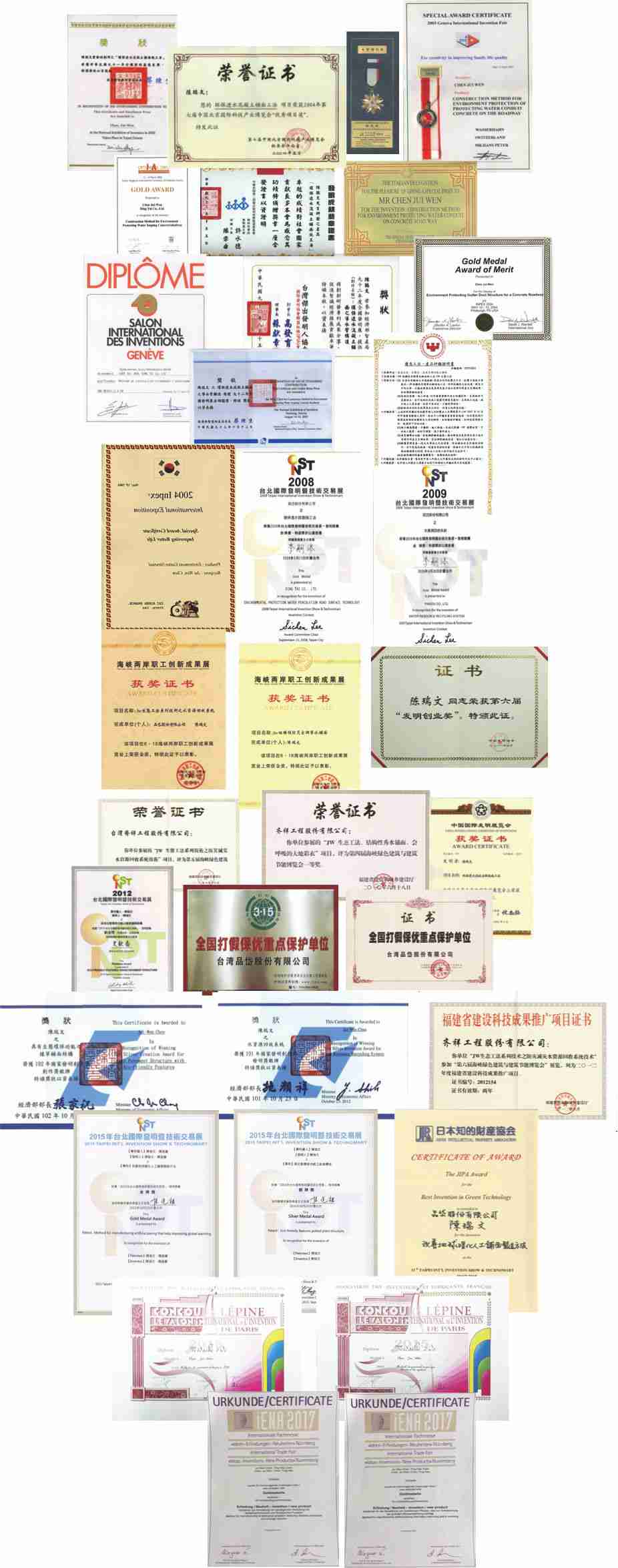 法国国际发明展 双金牌 台北国际发明暨技术交易展 金牌奖 日本发明协会 最佳绿能特别奖 |